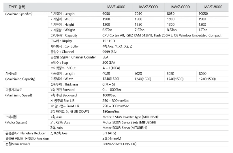 정원산업기계는 다양한 사양의 V컷팅기 및 CNC V컷팅기를 제공하며,